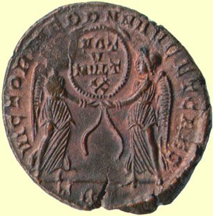 Bronze AE2 of AE2 of Decentius - Two Victories Holding Shield with VOTIS inscription Reverse