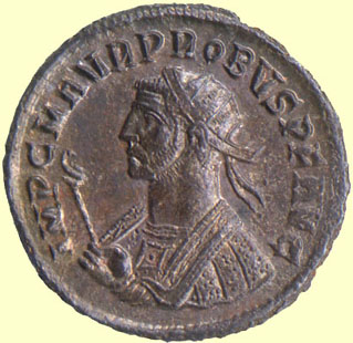 Radiate of Probus With Bust Holding Eagle - Tipped Sceptre In collecting the radiates of Probus, one is most likely to see variations in the style and decoration of the armour the emperor is wearing. He sometimes wears a cloak over his armour, and sometimes he wears no armour, with only the folds of his toga visible. |