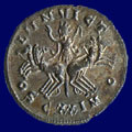RESTITVT ORBIS delta in field, XX1 in exergue. Female figure, possibly Terrarum stg right presenting wreath to Probus stg left. Sear s3364  XF+ (40 - 60)