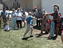New recruit Patti Ballard gets a workout in the Gladius Training Pit under the watchful eye of our Optio, Antony Lucius.