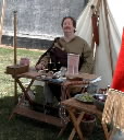 Beneficiarius Lucas Cornelius Flavius (Richard Lucas) prepares to show to the public some everyday items used by the Romans.