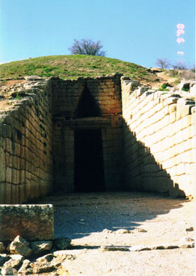 This is the tomb where 92 Athenian heroes are buried. The mighty Persian King Xerxes, irritated at the Greeks' attempts to help free their colonies in Asia Minor from Xerxes' yoke, decides he is going to wipe out these pesky independent city - states forever. Storms and other disasters take their toll amongst his invasion fleet , and Good King Leonidas defended the narrow pass at Thermopylae to the last of his 300 men before being betrayed. This still left a mighty Persian army intent on destroying the very memory of Athens. The Athenians, without any help from the other Greek city states except the Plataeans, turn back the Persian army on the Plain of Marathon some twenty miles from Athens. Though they greatly outnumbered the Athenians many times over, Xerxes and his army slunk away in defeat. The Plain of Marathon thus became a dividing line between East and West, a place where the future history and culture of the entire Western world were determined.