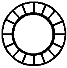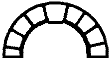 The Romans solved this problem by using a type of construction called voussoir arch with keystone. The idea behind this technical sounding term is quite simple. Imagine a ring of tapered stone blocks arranged like the diagram at the right. If one were to take a rope, wrap it around the ring, and tighten it, all it would do is force the stones more tightly together. Exchange the rope for a steel cable and tighten by twisting with a steel bar shoved between the cable and the ring and the circle of stones just becomes stronger! If a really hefty steel cable were used or the whole assembly were pounded with heavy hammers, it might fracture and pulverize, but a mighty force indeed would have to be used to destroy a ring made with this type of construction.