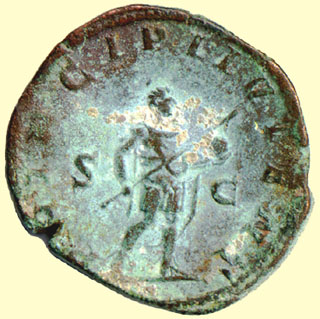 Next ImageThis is a particularly nice example of a coin depicting a Roman emperor holding a globe on the reverse. It has always made the author chuckle when he remembers that he was taught in the second grade that Columbus discovered that the Earth was "round". Eratosthenes knew that it was spherical in shape or nearly so in the Third Century B. C. The only thing that Columbus proved was that sailors throughout history are often apt to believe fantastic tales and are easily hoodwinked! :-)