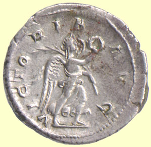 Next ImageThis coin has a deeply dished flan, especially on the reverse, that permits a beautiful high relief striking of the figure of Victory advancing right holding a wreath. The obverse is dished as well, but not as dramatically as the reverse.