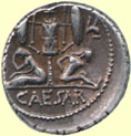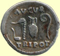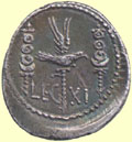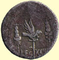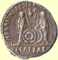 | Julius Caesar Denarius, Trophy and Captives | Marc Antony Denarius, Standards, Eagle, and Warship | Marc Antony Denarius, Standards, Eagle, and Warship | Augustus Denarius, Nephews | |