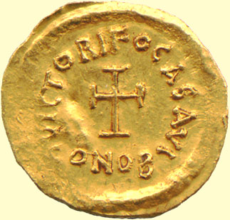 Gold Solidus of Phocas with Cross and Legend Reverse
