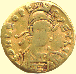Gold Solidus of Leo I with Angel Holding Long Cross Reverse