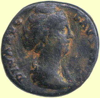 Faustina's features bespeak a mature beauty much in contrast to the youthful beauty seen in images of allegorical figures and male portraits on Roman coins. The die engraver's skillful execution of her portrait stand as a testimony to his skill in portraying the lovely charms of a rather plump empress well into her middle years. Her story is told in the author's article in the section on Roman Ladies.