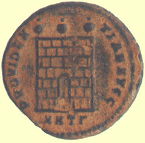The camp gate device alluded to the strength of the Roman army and the protection it afforded the Roman people against attack by foreign invaders.