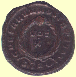 This legend is usually something like VOT V MVLT X or VOT X MVLT XX. The wreath types are very common and, like the altar with inscription types, were issued on the occasion of the emperor paying his vows every fifth anniversary of the beginning of his reign. The vows were a money sacrifice paid to the gods (later the Catholic Church) in thanks for the last five years and to ensure that the emperor would have a good reign during the next five years.