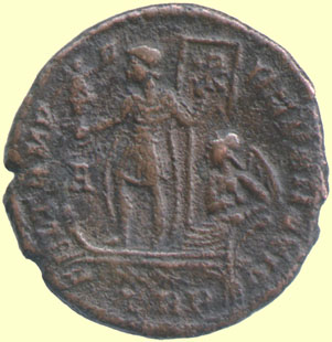 Bronnze AE2 of Magnentius with Emperor in Ship Reverse