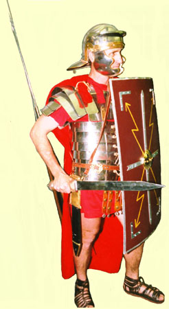 Grateful acknowledgement is given to Robert Gabisch, the Roman legionary reenactor and civic building modeler who is wearing the uniform shown at left, for the contribution of his time and expertise to this project
