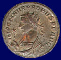 VIRTVS PROBI AVG, XXIQ in exergue. Probus on horseback right with shield and spear riding down captive.